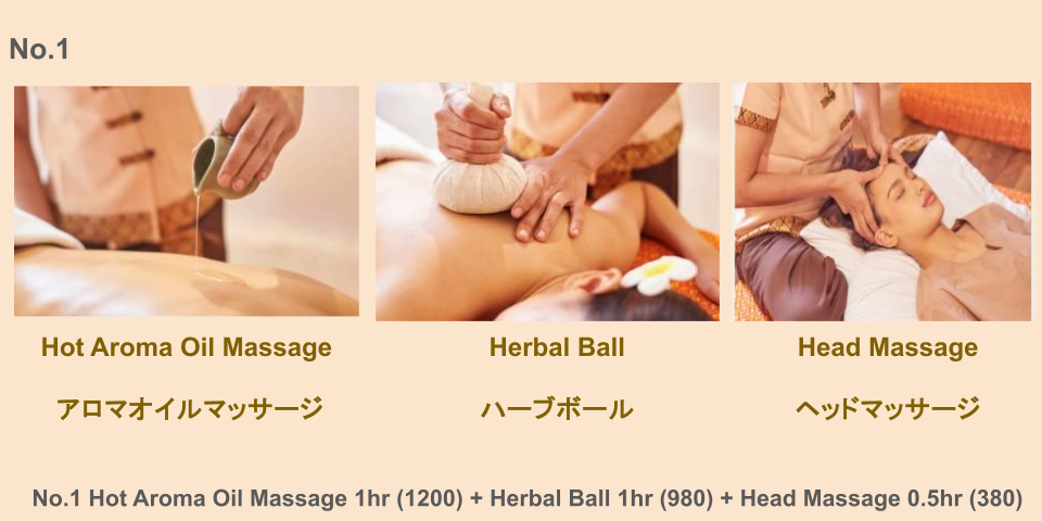 ホットアロマでオイルマッサージ60分 + ハーブボール60分 + ヘッドマッサージ30分